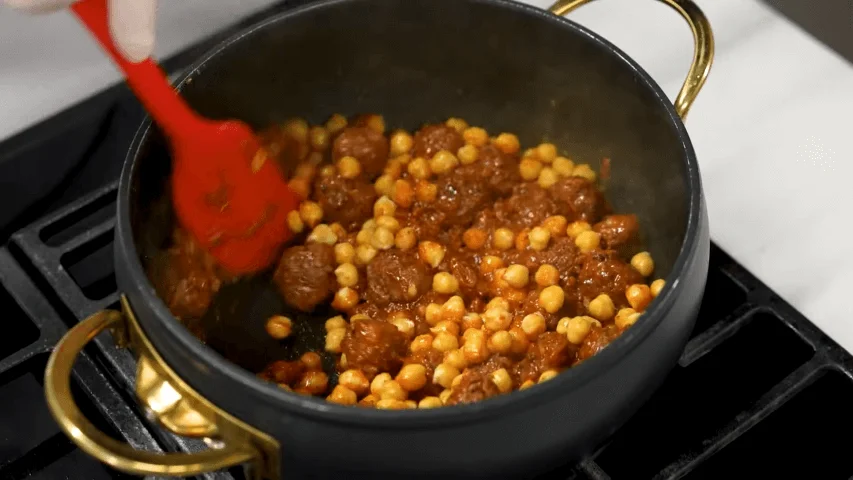 - Daha sonra haşlanan nohutları ekleyerek 5 dakika kadar bu şekilde pişirin.