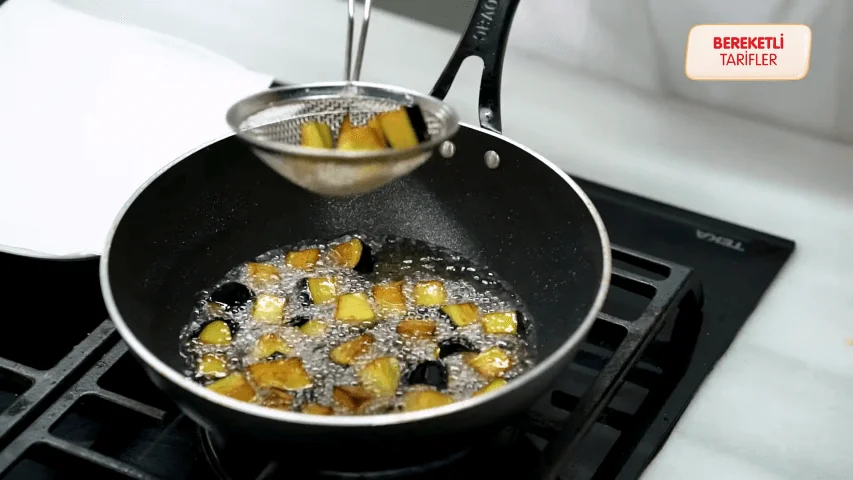 - Havuçları küp küp doğradıktan sonra tencereye sıvı yağ koyup kavuralım.
