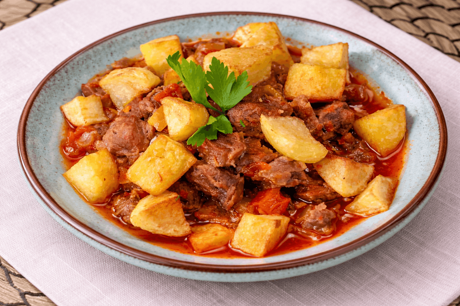 Türk mutfağının köklü ve doyurucu lezzetlerinden biri olan tas kebabı, lokum gibi pişmiş eti ve yoğun aromalı sosuyla sofraların vazgeçilmez ana yemeklerinden biridir. Osmanlı mutfağından günümüze kadar ulaşan bu özel tarif, pratik hazırlanışıyla kalabalık aile sofralarında sıkça tercih edilir. Tas kebabı, doğru tekniklerle pişirildiğinde etin lif lif ayrıldığı, sebzelerin aromasıyla zenginleşmiş ve damakta unutulmaz bir tat bırakan eşsiz bir yemektir.
